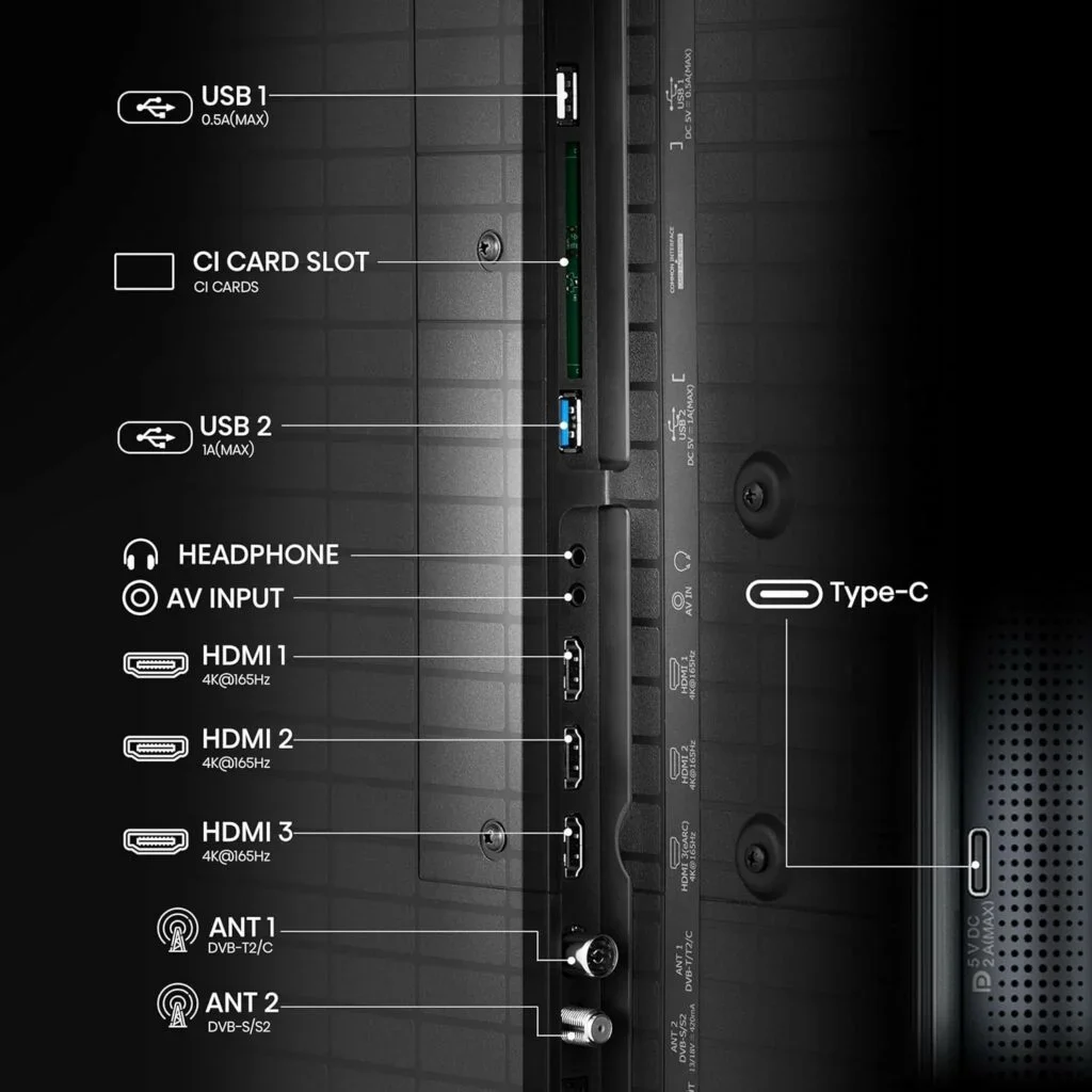 - Pro-Level Gaming & Motion: A native 165Hz refresh rate combined with Game Mode Ultra and AI Sports Mode ensures ultra-smooth, blur-free visuals.