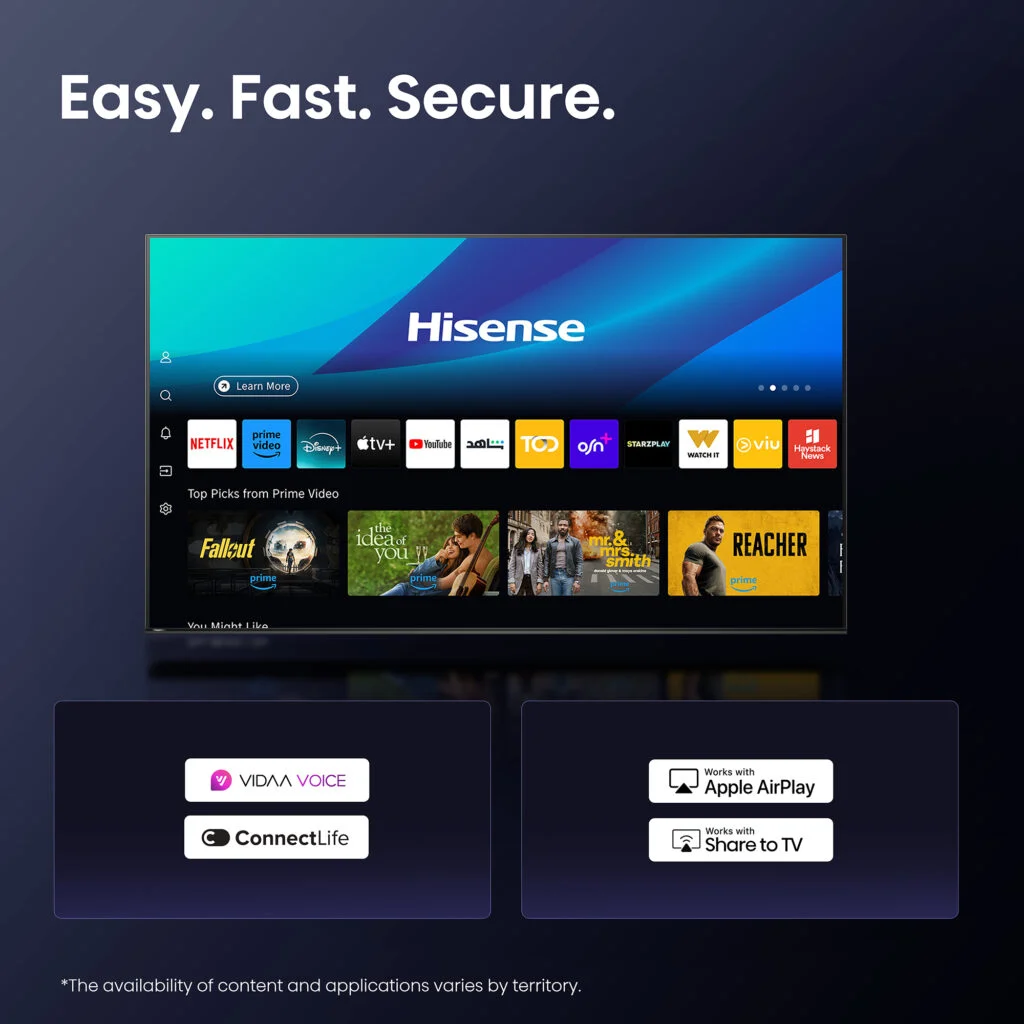 - Smart OS & Connectivity: Runs on the fast and simple VIDAA Smart OS (often with voice control support). Includes 4 HDMI ports and 2 USB ports.